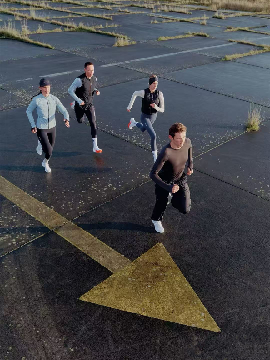 比如服饰。在强势发展的鞋履之外,萨洛蒙也在同步开发适合路跑训练的服装产品,抓住新的细分品类增长机遇。今年1月,萨洛蒙推出新的FALCON FLY高端竞训跑服系列,设计灵感源自品牌双板竞速滑雪鞋的结构语言,完整覆盖跑步爱好者在跑前热身、跑步训练以及跑后放松的所有场景,产品涵盖保暖夹克、背心、羊毛混纺长袖、二合一跑步裤等产品。新的FALCON FLY跑服系列既是品牌全品类生态发展的创新延伸,也标志着品牌在高端路跑市场布局的重大升级。