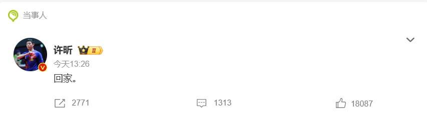赛后,许昕疑似不满裁判判罚,赛后社媒发文:回家。
