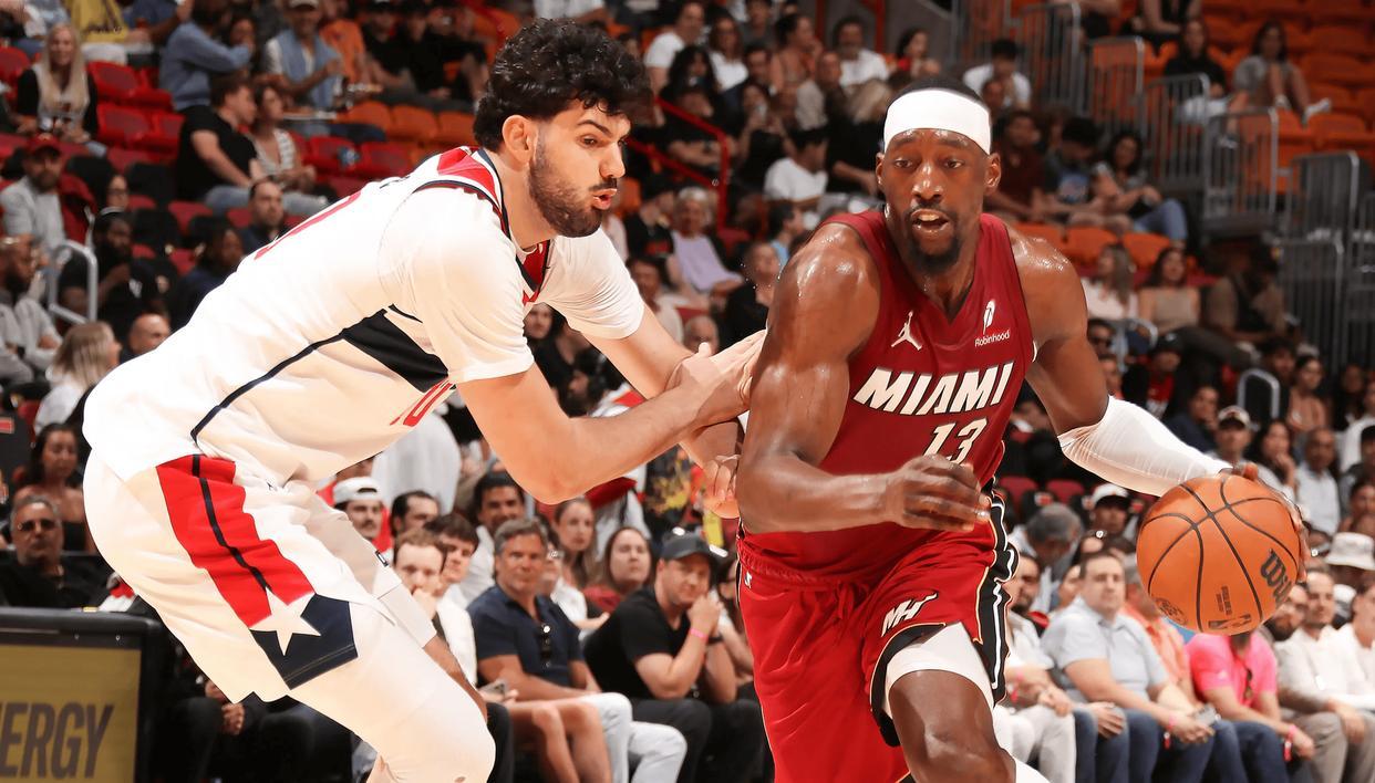 本场比赛,双方在首发阵容上面,奇才这边派出的是,库利巴利,莱利,萨尔,特雷约翰逊,卡林顿。热火这边派出的是,拉尔松,加德纳,阿德巴约,米切尔,卡斯帕拉斯。首节比赛开始,热火率先拿到球权,阿德巴约背身单打得手,打进本场比赛首个进球,阿德巴约弧顶追身三分一箭穿心,萨尔正面大号三分予以回应,萨尔面筐冲击篮下,急停干拔同样也有,拉尔松飞身冲击篮下制造杀伤,站上罚球线两罚全中,阿德巴约底角三分空心打进。此后一段时间,阿德巴约一发不可收拾,突投结合样样都有,单节16投10中轰出31分。