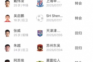 体育资讯7月22日讯 2025年中超夏窗关闭,申花报名名单方面,球队引进了外援阿苏埃,他已经在联赛中亮相,戴伟浚补报名。